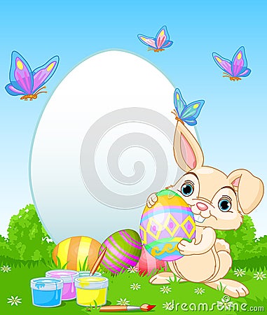 Easter Bunny painting Easter Eggs. Perfect for your Easter Greeting