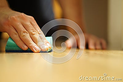 Hand scrubbing the floor with sponge