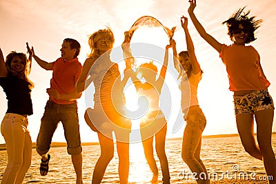 © Photographer: Yanlev | Agency: Dreamstime.com Description: Group of happy young people dancing at the beach on beautiful summer sunset Keywords (Report | Suggest) happiness carefree students shore friends coast women celebration silhouette music group fun summer disco dawn joy sunlight holiday people together leisure sky dancing relationships girl evening festival dance party jumping hands teenagers celebrate picnic weekend beautiful active friendship company sea boy youth beach young teen sunset vacation enjoyment men