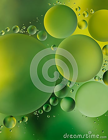 Green bubble created by oil drops on water surface as background