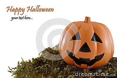 Halloween background with Jack o lantern and autumn leaves on white background.
