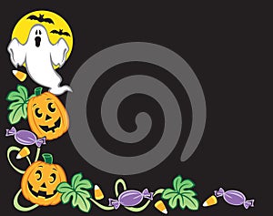 pumpkin fun party leaves smiling candy cute jack moon o happy bats halloween holiday border ghost playful lantern vine