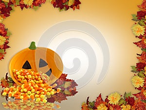 orange decoration illustrated halloween gold stationery corn season digital dimensional background pretty fall illustration color graphic flowers candy irisangel decorative dish invitation element holiday artistic autumn harvest seasonal rust pumpkin frame template border yellow garland leaves brown thanksgiving colors