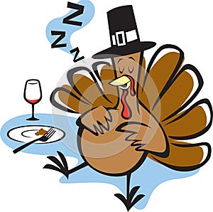 bird lazy november feast fork hat stuffing sleepy gravy meal dinner turkey wine pilgrim nap plate illustration obese cartoon banquet thanksgiving vector fat full food holiday lunch