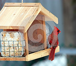 © Photographer: Misscanon | Agency: Dreamstime.com KEYWORDS: eating seed wild contrast sunflower nature cute wing seeds home cardinals animal birds colorful biology garden observation gardens animals feathers black beak food ornithology homes sunflowers wings red feather cardinal posing flamboyant bird contrasts