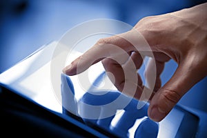 © Photographer: Pressureua | Agency: Dreamstime.com eywords: hand point working contemporary finger innovation monitor ipad futuristic device smart modern new ipad2 media digital using tech virtual lcd mobile portable gadget tablet information apple equipment touch input blue future man screen technology pad interface computer notebook typing touching communication laptop innovative display pointing push use electronic touchscreen touchpad work