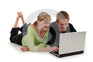 © Photographer: Piksel | Agency: Dreamstime.com Keywords: happy smile body fun casual using full white working laptop accessibility isolated internet mobility typing looking couple young online smiling computer woman teenagers technology man background laughing students student floor home leisure happiness business searching wireless education down people lying toothy concept