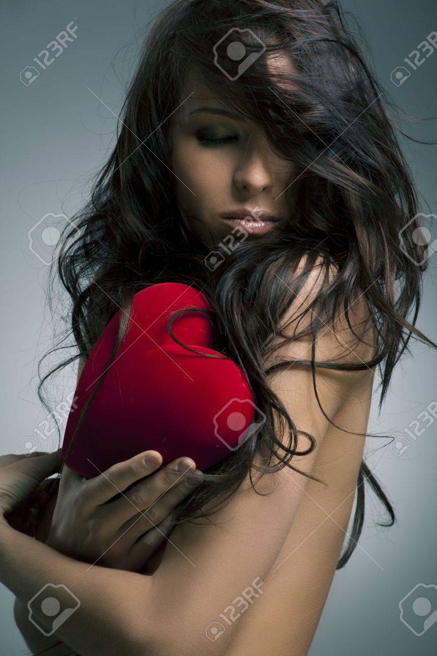 adult, attractive, beautiful, beauty, brunette, colour, cosmetics, cute, day, elegance, expression, face, fashion, female, girl, glamour, hair, hands, hearts, lady, love, makeup, model, portrait, pretty, red, romantic, sensual, shiny, skin, studio, valentine, valentine s day, woman, young