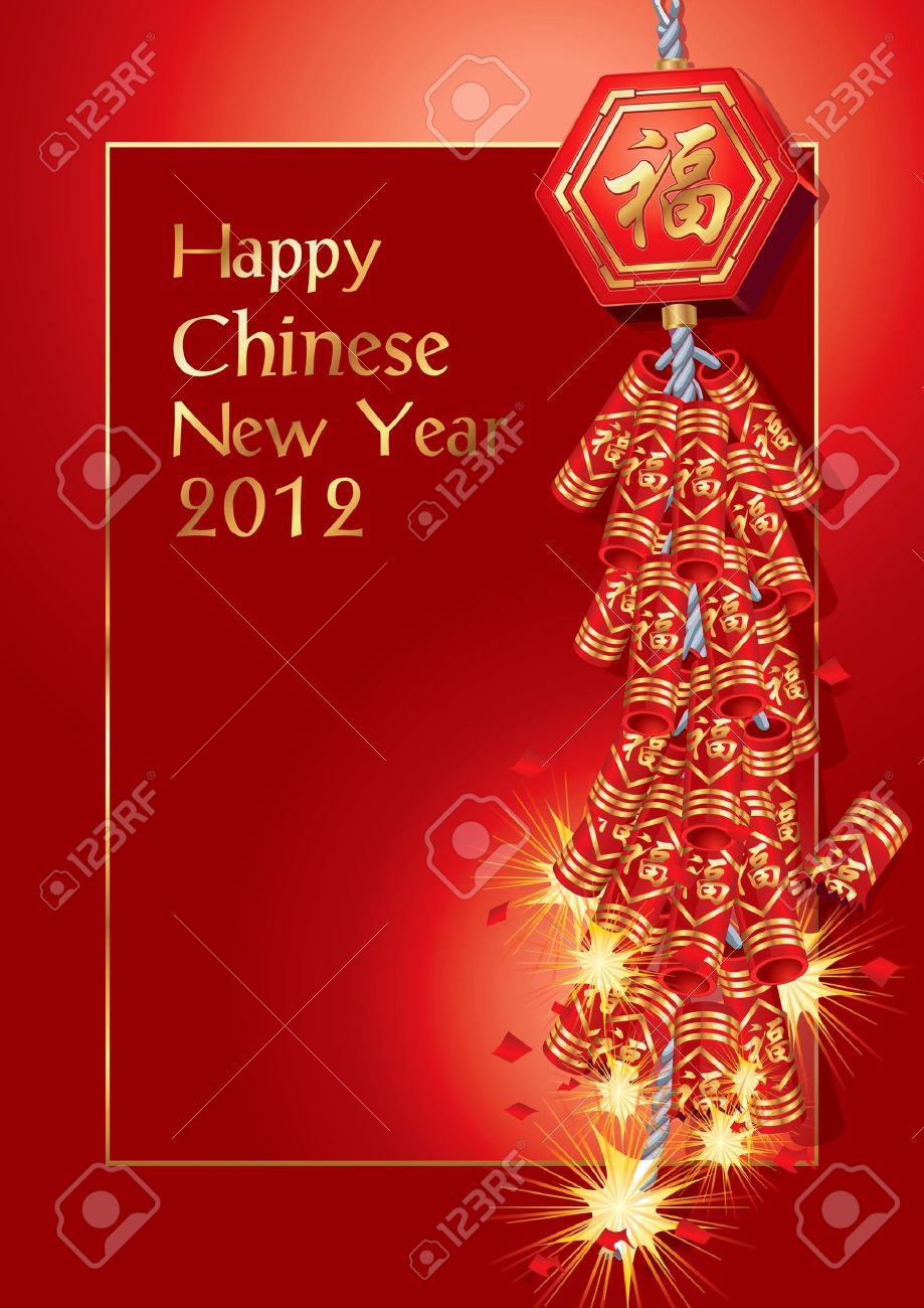 Vector - Firecrackers on Chinese New Year Card. Vector illustration.