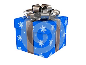 blue, box, christmas, gift, band, birthday, bow, celebrate, celebration, chrome, closeup, detail, give, glad, happy, holiday, isolated, macro, new, object